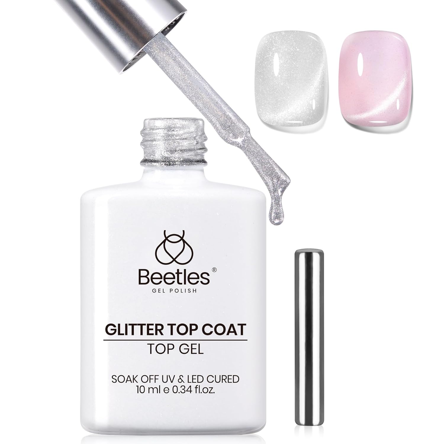 Beetles Cat Eye Gel Top Coat,2 in 1 Top Coat Gel Nail Polish & Cat Eye Magnetic Effect No Wipe - Shine Finish and Long Lasting, Soak Off LED Nail Lamp Nail Art Design Manicure Diy at Home