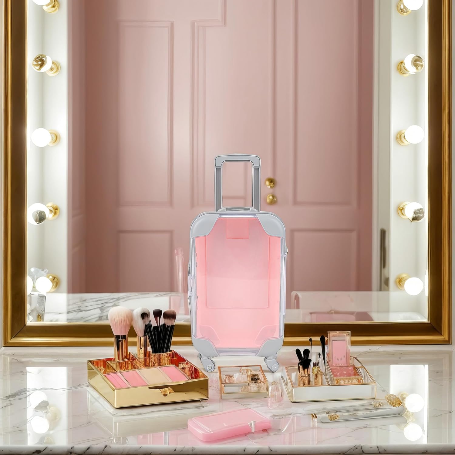 False Eyelash Storage Box, Portable Travel Organizer Mini Luggage False Eyelash Tray Makeup Tool (PINK)