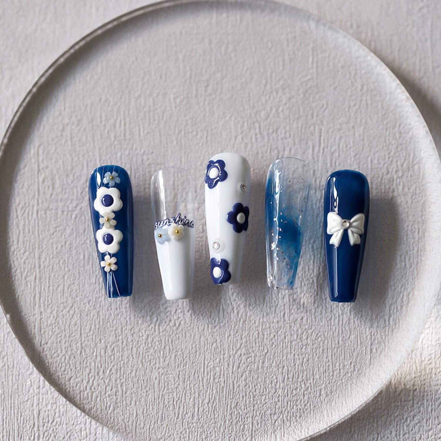 - spring summer nail stickers for nail art for women kids girls holiday cute flower nail art stickers 5D embossed nail decals design blue floral fingernail stickers calcomanías para uñas sticker para uñas