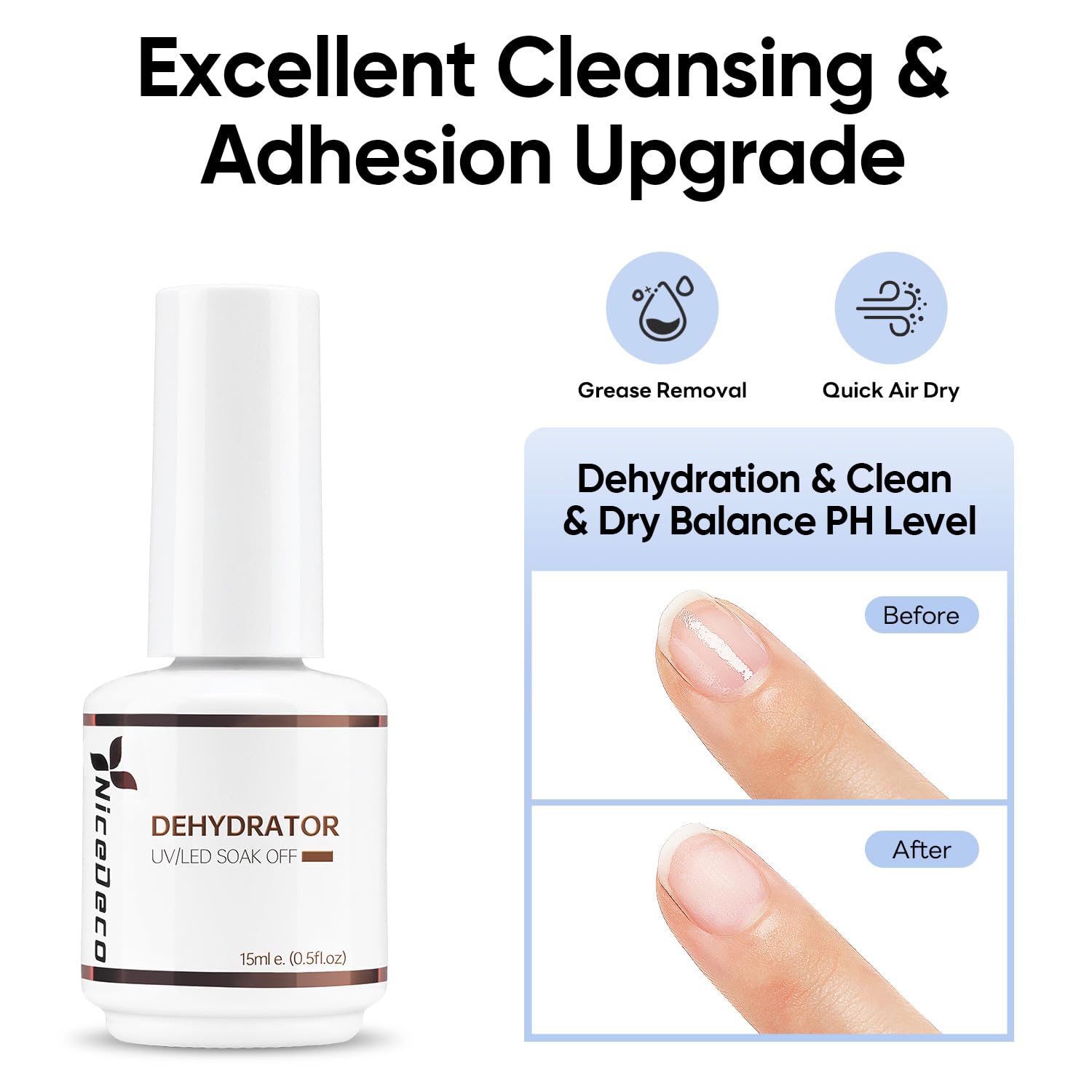 - Salon-Grade Essential for Strong Adhesion: Set the foundation for nails with our Salon-Grade Nicedeco Nail Dehydrator for acrylic nails. This essential step will ensure strong adhesion, helping you achieve flawless, long-lasting results like a pro.