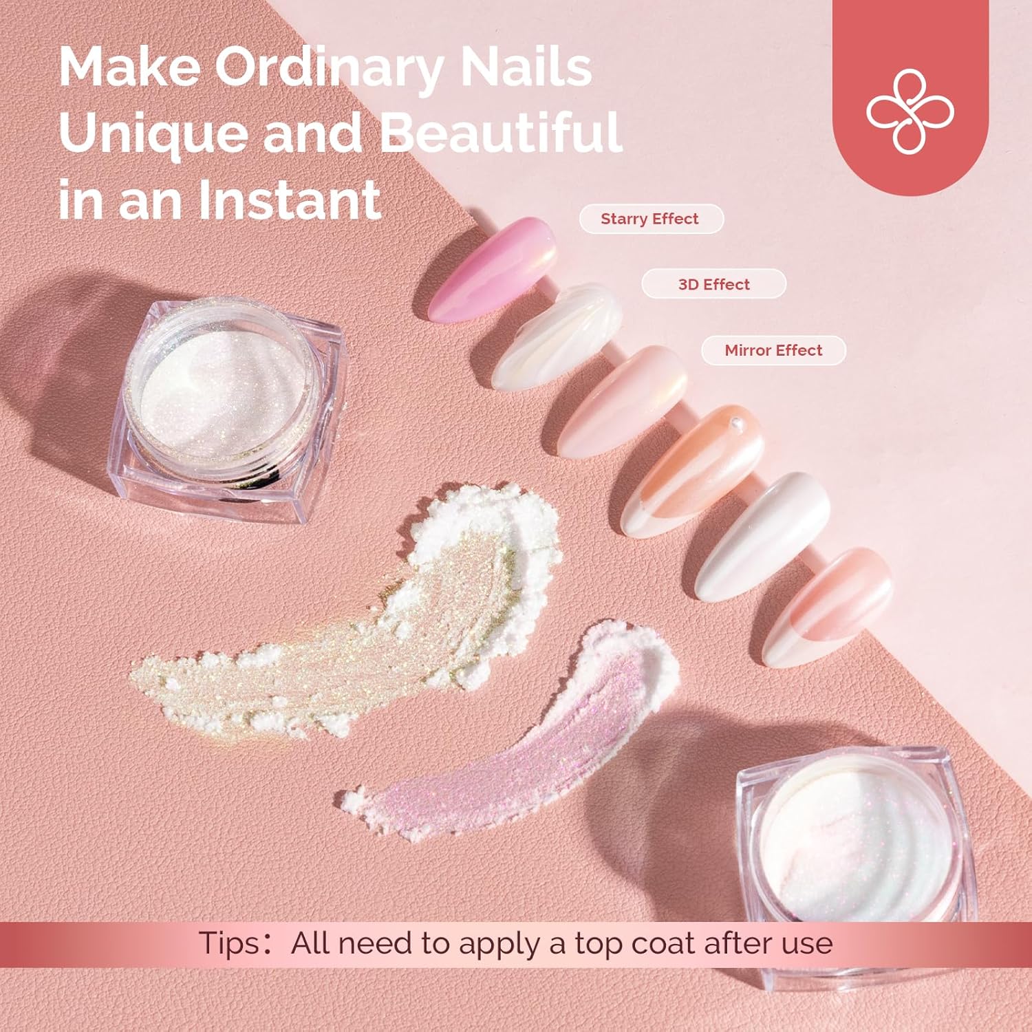 MelodySusie 2Pcs Chrome Nail Powder for Gel Nails, Pearl Powder Mirror Effect Pigment Pearlescent Mermaid Pigment Pearl Glitter for Home DIY Salon Use