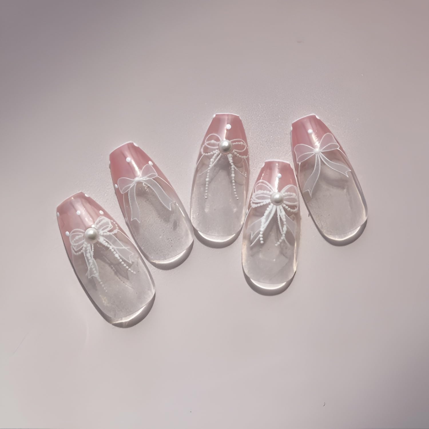 - White bow Nail Art:White bow nail supplies is fun to DIY nail art with your family or friends when family gathering and party, enjoy your own shiny and special-looking nails, show your charm easily and have a good time