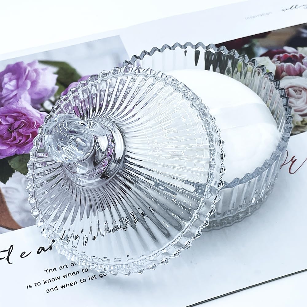 • Decorative Glass Powder Jar:The powder puff jar is made of high-quality glass, which is thick and sturdy. The design is elegant and luxurious for long-lasting beauty, making a instant décor upgrade for your dressing table, bathroom,nurseries, or vintage-themed rooms.