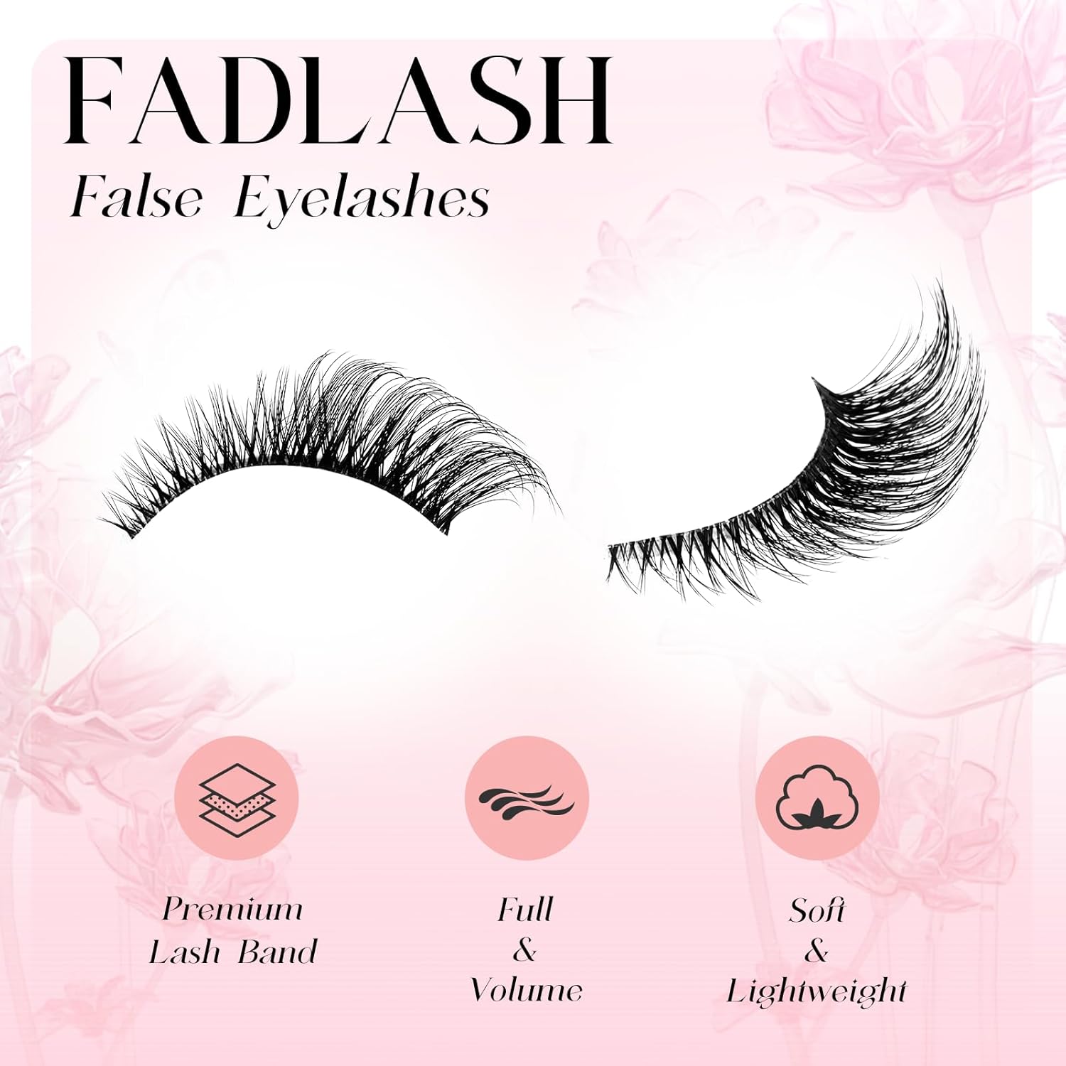 FADLASH False Eyelashes Natural Look Cat Eye Lashes Wear Comfortable Black Fake Lashes with Thin Band, Pack 10 Pairs, BY003