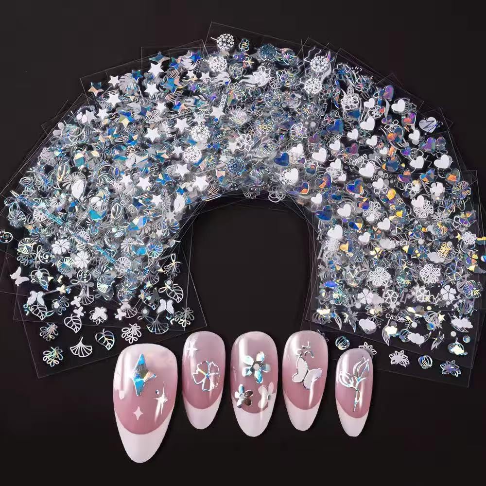 - Widely usedοΌNot only for luxurious nail art accessories, our aurora silver series 3d floral nail stickers are also for decoration of your mobile phone cases, greeting cards, body art, etc. Suitable for home use and professional nail salon