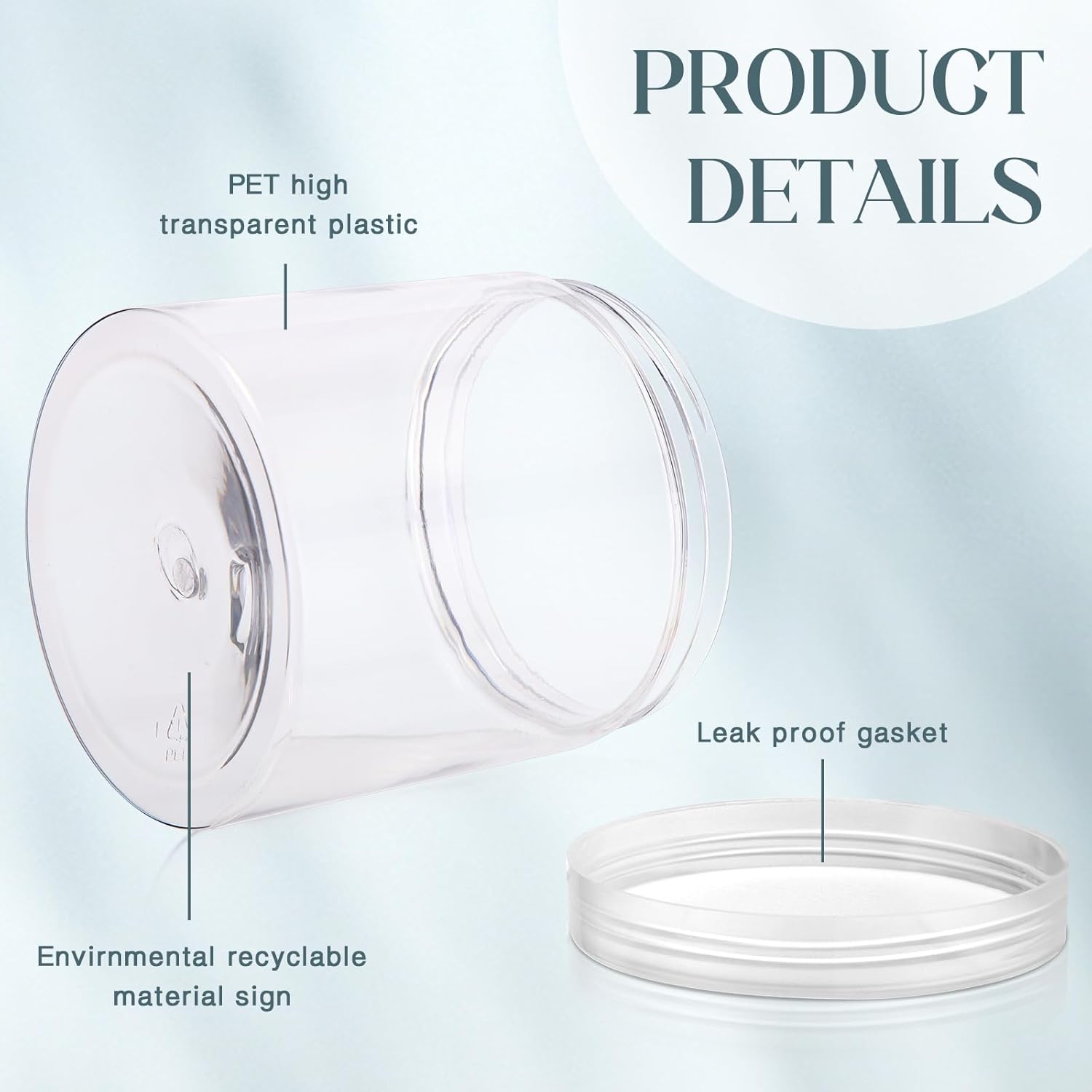 - What You Receive: there are 4 pieces plastic jars with clear screw-on lids; They are durable and refillable, measuring about 16 oz in capacity