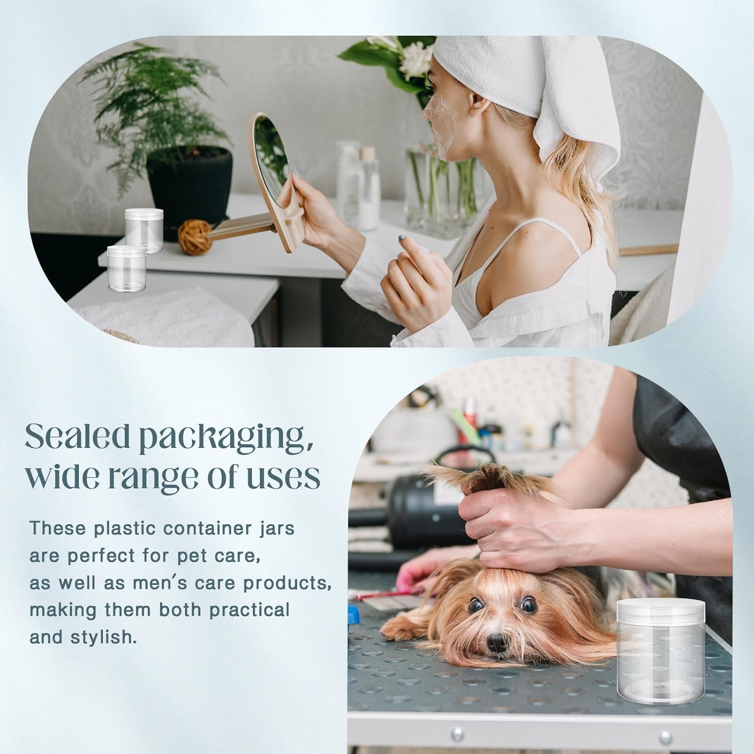 Patelai 4 Pieces Round Wide-mouth Leak Proof Plastic Container Jars with Lids for Travel Storage Makeup Beauty Products Face Creams Oils Salves Ointments DIY Making(16 Ounce,Clear)