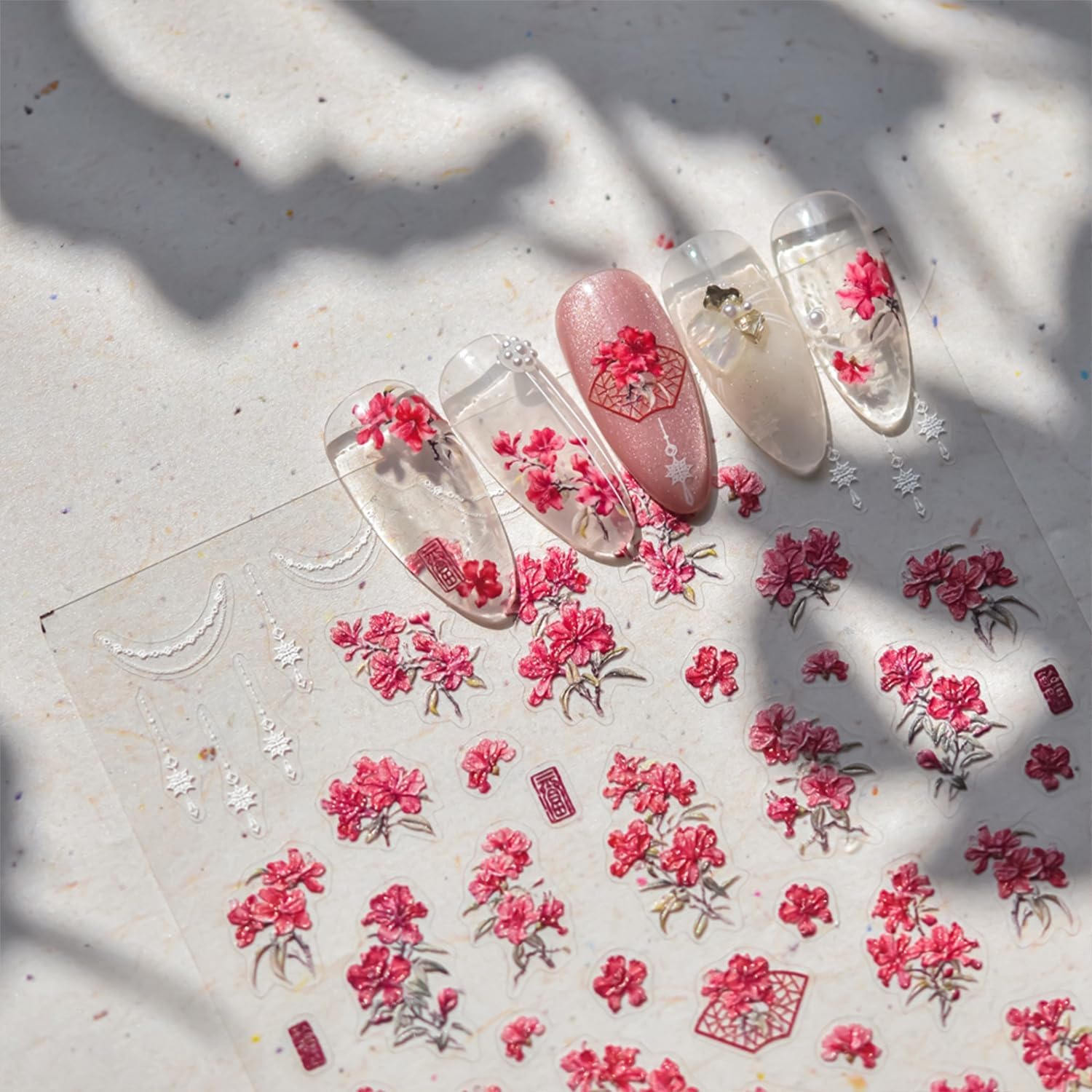 - Safe Materials:Red flower nail stickers are made of environmental friendly materials.You can use it with confidence, even pregnant women and children can use it
