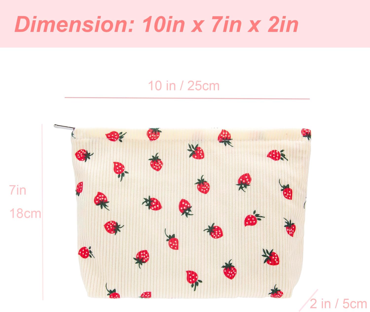 PAZIMIIK Makeup Bag Large Cotton Zipper Pouch for Purse Travel Canvas Make Up Organizer for Women Cosmetic,Strawberry Beige