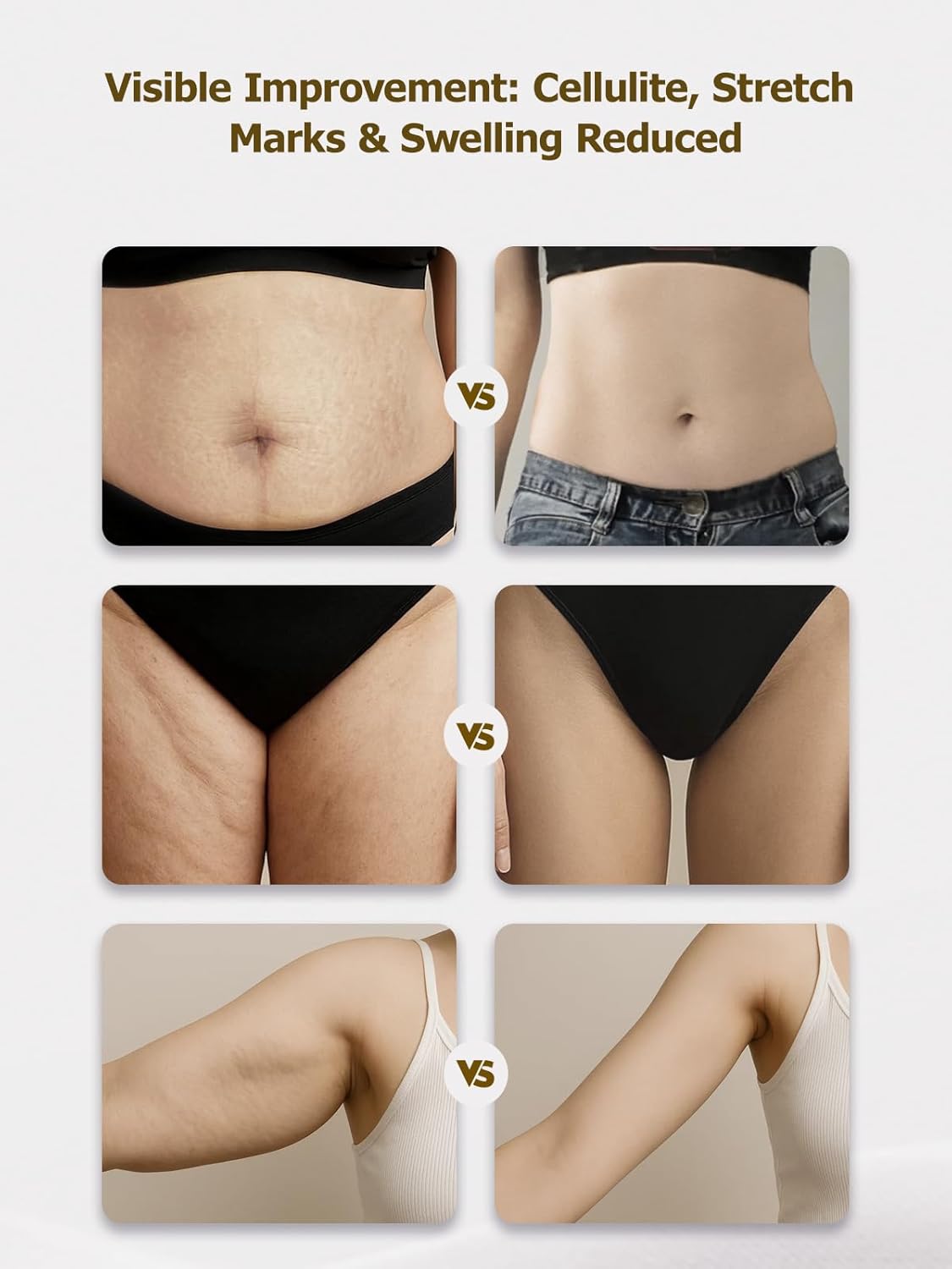 - Anti-Cellulite Technology β Smooth & Tighten Your Skin: This cellulite massager combines light, heat, vibration, and SoothingPulse to target stubborn cellulite & stretch marks. It boosts circulation, enhances collagen production, and improves skin elasticity, leaving you with firmer, more toned, and smoother skin. Ideal for legs, arms, stomach, thighs & waist.