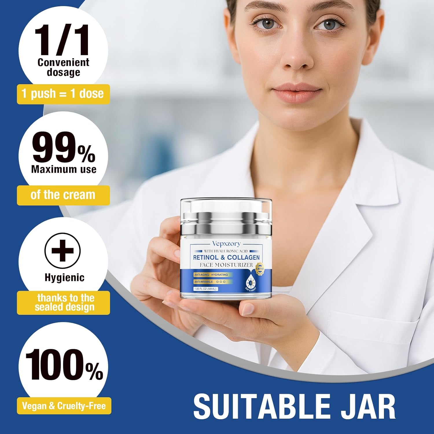 - Face Moisturizer for Women: Experience the power of moisturizer face cream for women with Collagen, 1% Retinol, and Hyaluronic Acid. Our wrinkle cream formula has been carefully refined to support the skin’s natural barrier and provide hydration for improved comfort. Designed to help reduce the appearance of dryness and fine lines, it leaves the skin feeling soft, smooth, and healthy-looking.