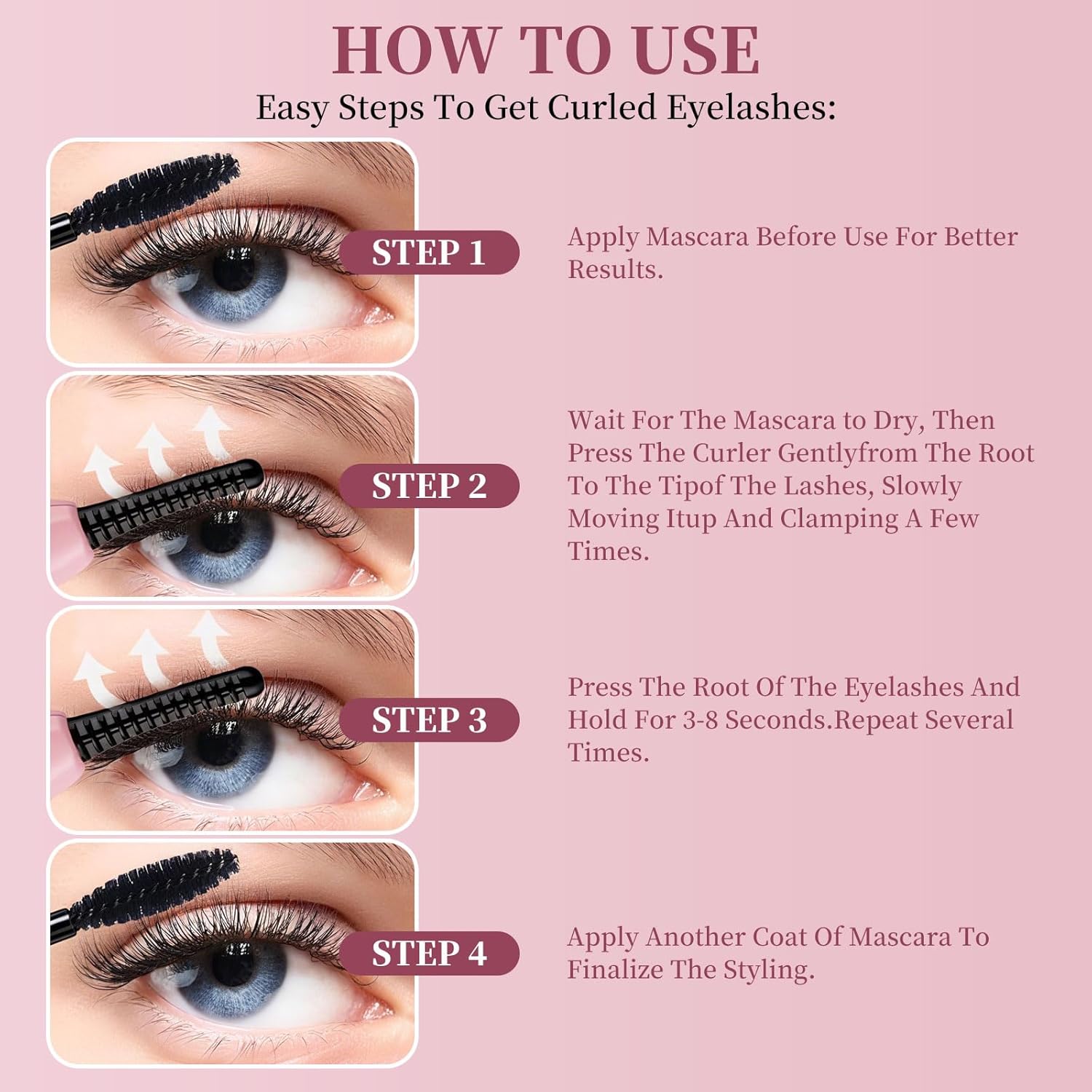 - 【Usage Tips】For better curling results, apply mascara before using the curler to improve heat styling. After curling, reapply mascara to enhance the lift and hold for a natural, long-lasting curl.