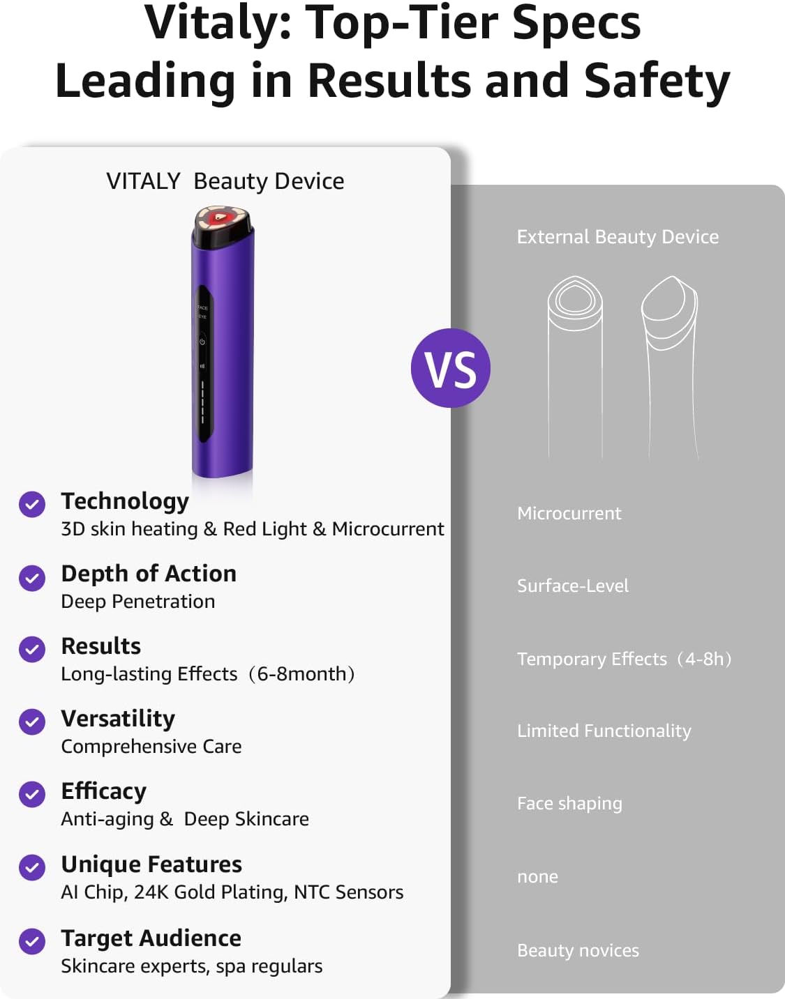 - Unlock Your Best Skin: Maximize your product benefits and transform your skin's health with the VITALY Beauty Device. Proper usage is essential for optimal results. Before use, especially if you have sensitive skin, recent treatments, or ongoing medical care, consulting a healthcare professional is crucial to avoid potential adverse reactions
