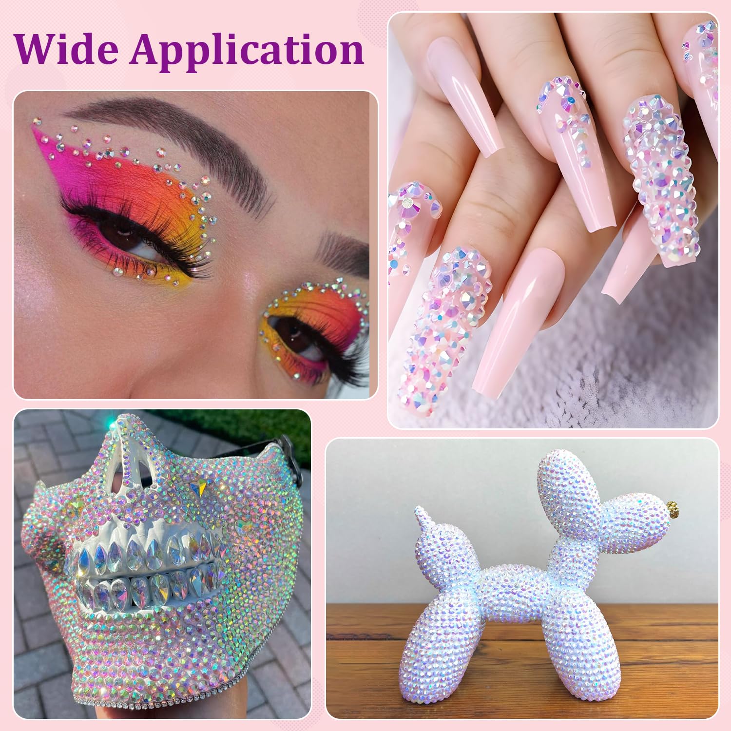 • WIDE APPLICATION -- These sparkling iridescent resin rhinestones are perfect for creating dazzling looks. Use them for bedazzling crafts like shoes, tumblers, mugs, bottles, phonecases, bags, glasses, hats, masks, clothing, clothes or nail art and more