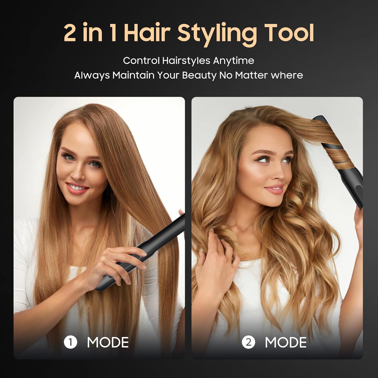 Cordless Hair Straightener and Curler 2 in 1, Titanium Flat Iron with Fast Heating, 4 Adjustable Temperature, Rechargeable Straightener for All Hair Types, Portable Styler for Travel (Black)