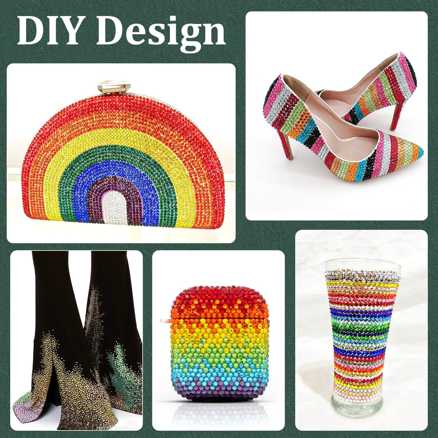 - WIDE APPLICATION -- These sparkling iridescent resin crystals are perfect for creating dazzling looks. Use them for bedazzling DIY crafts like shoes, tumblers, mugs, bottles, phone cases, popsockets, scrapbooks, photo frames, diamond paintings, greeting cards, bags, glasses, guitars, keychains, hats, masks, hair clips, bracelets, wristbands, clothing, wedding dresses, and more. Apply it to what you want to bling!