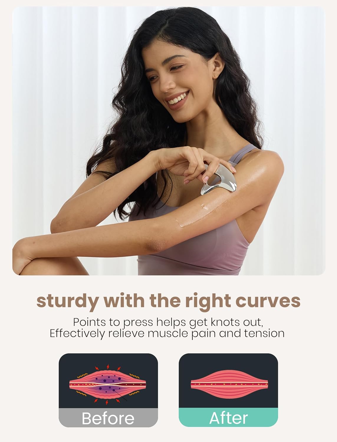 lifechill Heavy-Duty Stainless Steel Gua Sha, Muscle Scraper Tool, Lymphatic Drainage Massager for Self Care, Metal GuaSha Tool for Full Body, Trigger Point Massage Tools for Pain Relief