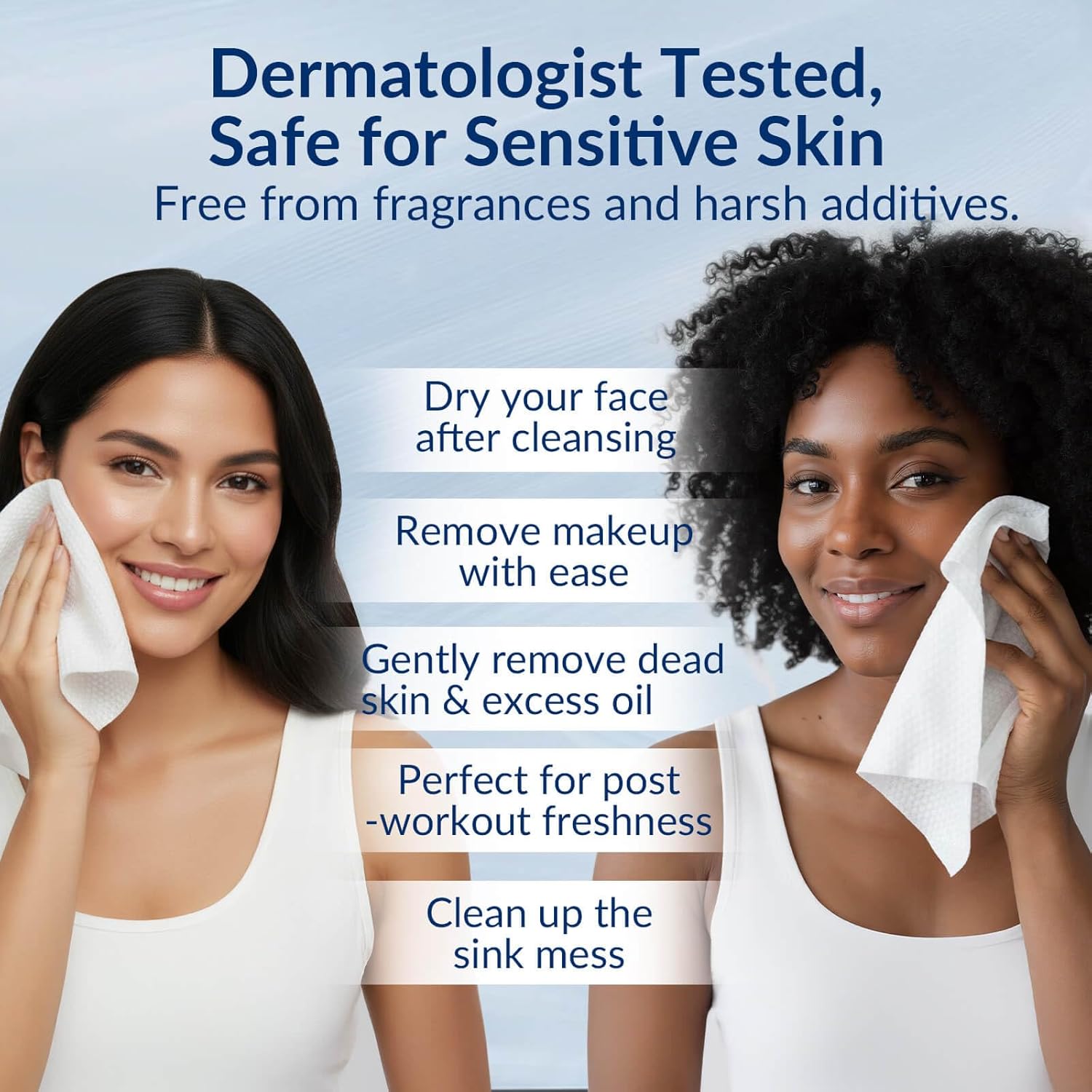 - SKIN-FIRST COMFORT IN EVERY DISPOSABLE FACE TOWEL: Crafted by a skincare-conscious brand, our disposable face towels are free from fragrances and harsh fibers. These ultra-soft washcloths for face provide gentle, irritation-free cleansing, leaving your skin feeling refreshed and nourished.