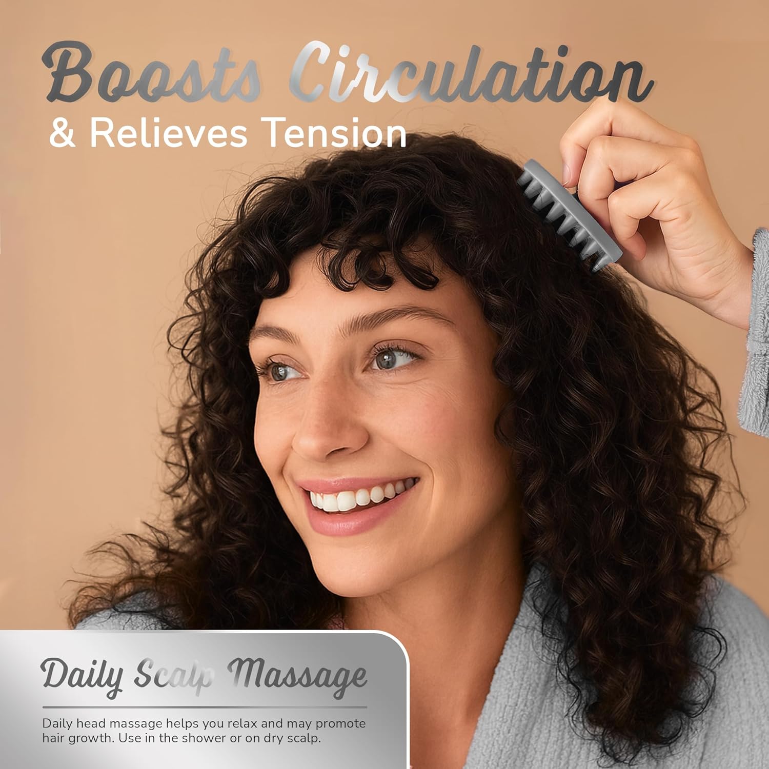 - Non-slip ergonomic handle for easy control β a balanced, palm-fitting grip stays steady in wet, soapy hands and works with either hand, giving you a relaxed, consistent scalp massage every time.