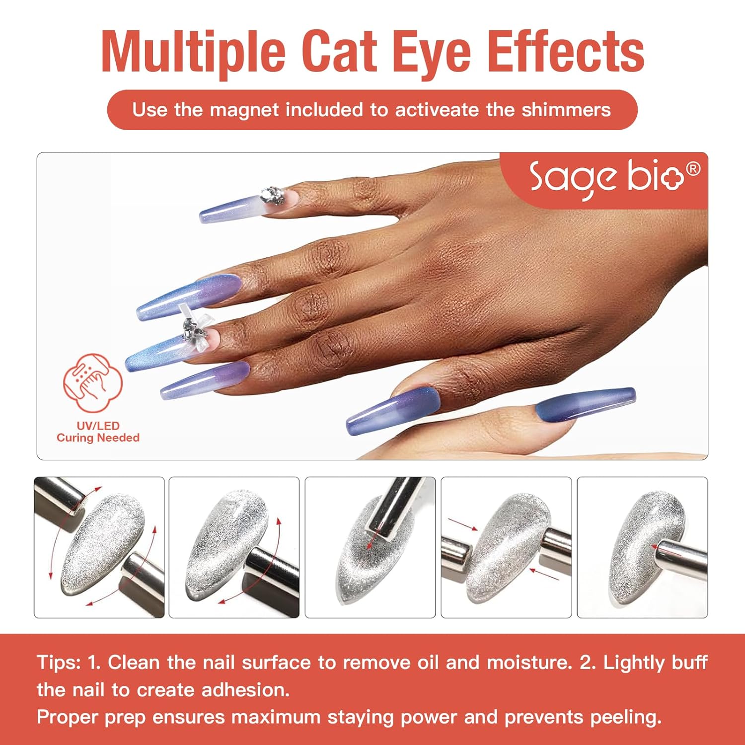 - Single Bottle, Salon Size: Includes one 15ml/0.5oz bottle of SAGEBIO Cat Eye Gel Polish. Use with magnet and different base colors to create unique shimmering nail effects. Customize your style from soft to bold.