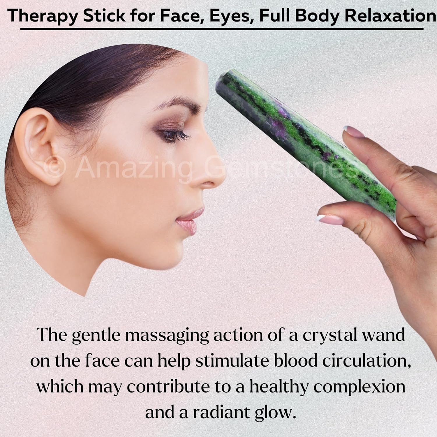 Amazing Gemstone Ruby Zoisite Crystal Wand Massage Stick - Pelvic Wand Gua Sha for Adults - Crystals and Healing Stones Massage Wands for Adults Gifts (Smooth)