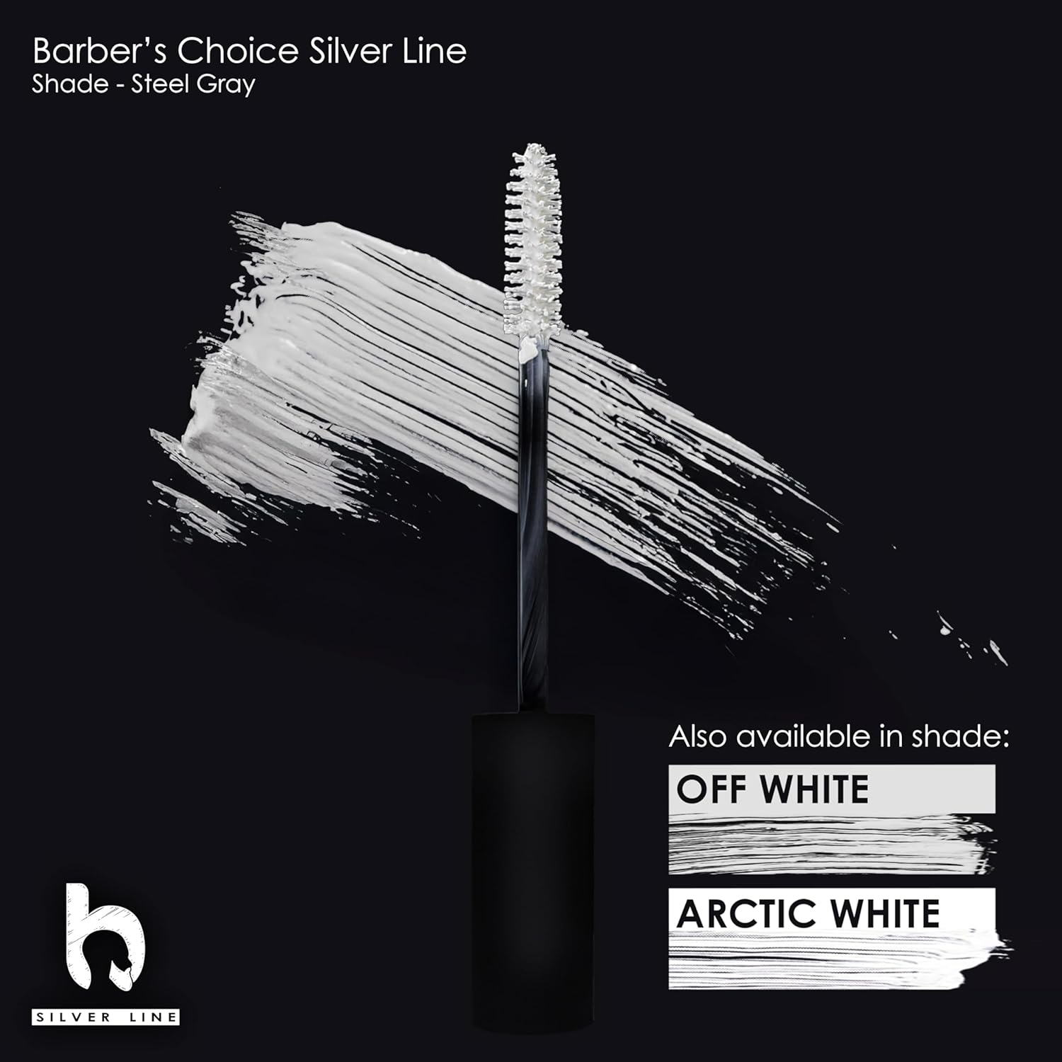 Barbers Choice Silver Line, Facial Hair Brush on Temporary Color for Silver Fox Men- Instantly Brighten White Beards, Mustache & Sideburns, Less Yellow, Easy Application, Steel Gray