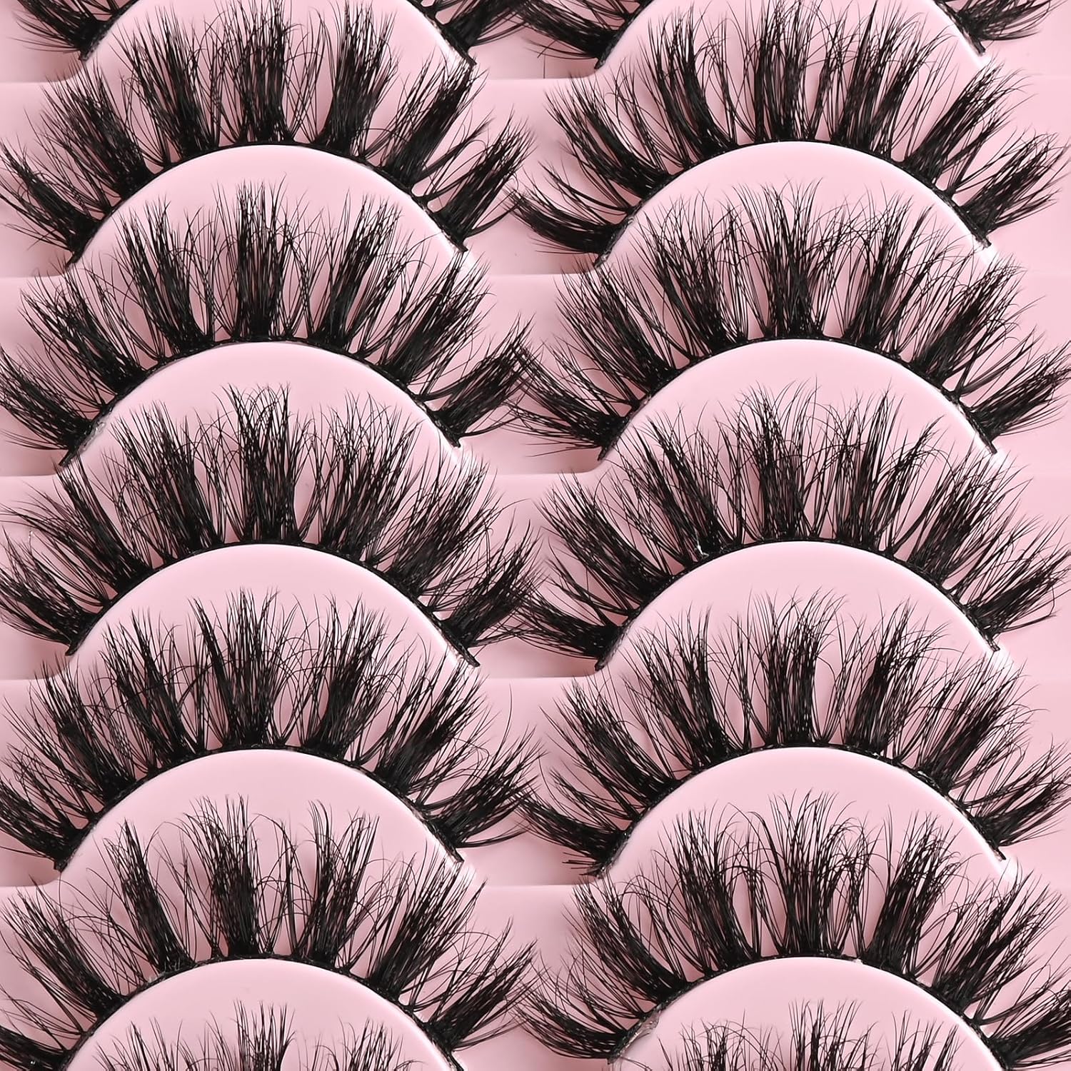 FARRED Fluffy Lashes Natural Eyelashes Short Wispy Eye Lash Strips 14 Pairs Separated Volume Eyelash Pack 16mm Dramatic Wispies Fake Strip Lashes Clusters Cat Eye Pestañas Spiky Look (F24 | 9-16mm)