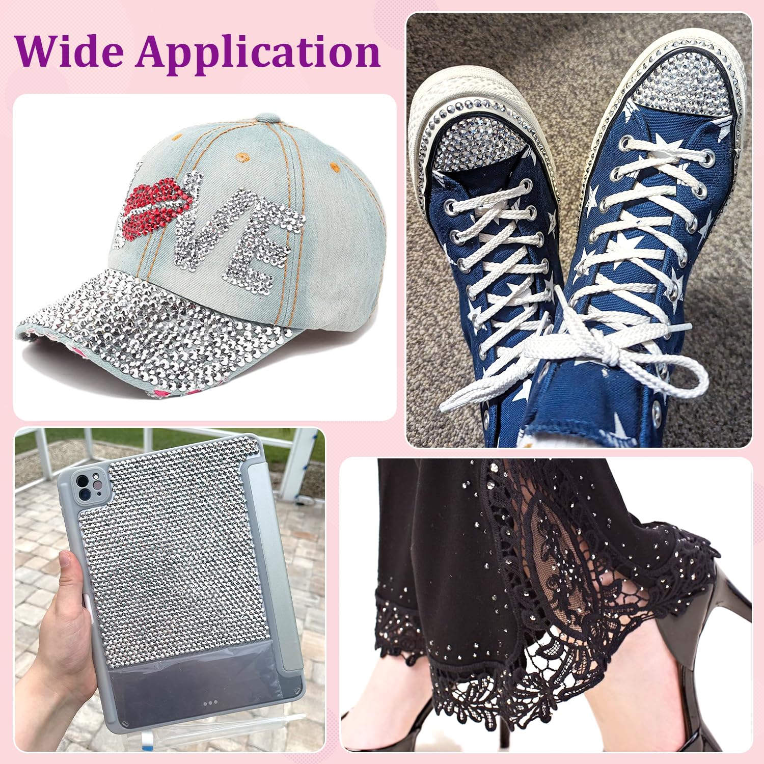 - WIDE APPLICATION -- These sparkling iridescent resin rhinestones are perfect for creating dazzling looks. Use them for bedazzling crafts like shoes, tumblers, mugs, bottles, phonecases, bags, glasses, hats, masks, clothing, clothes or nail art and more. Add sparkle to anything with these versatile resin gems