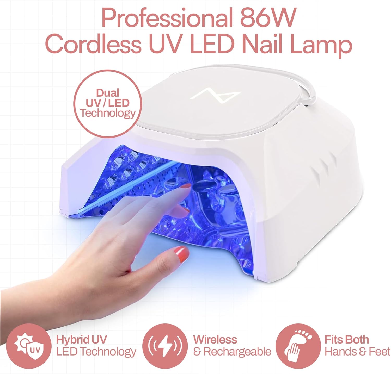 M - GlowPro Professional Hybrid 86W Wireless Rechargeable UV LED Nail Curing Lamp Cordless Nail Dryer for Gel Nails, Manicure, Pedicure (Teal)