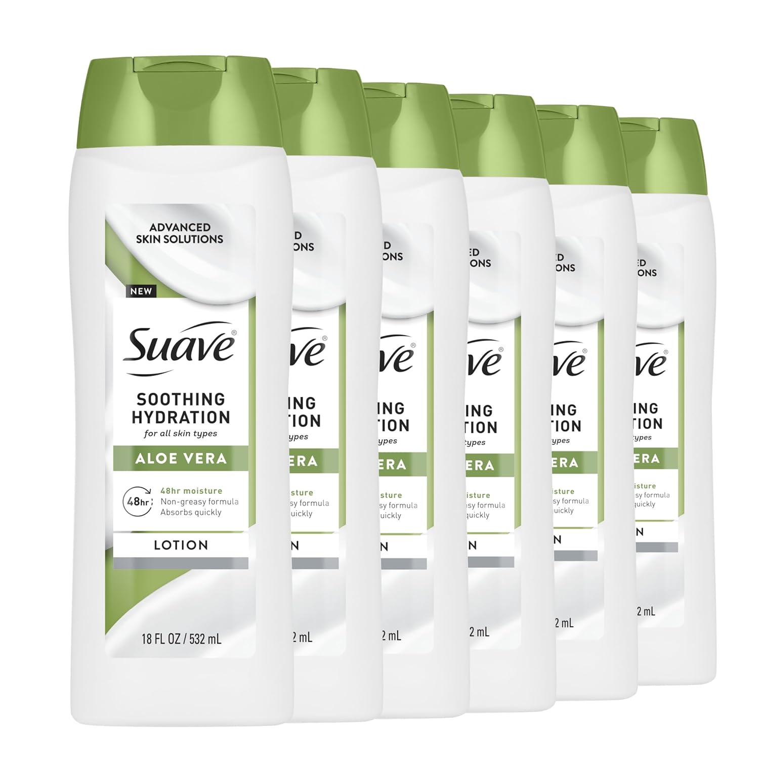 Suave Soothing Hydration Hand & Body Lotion With Aloe Vera Refreshes Dry Skin, Fast Absorbing, Intensive Moisturizing Cream For Women, Non Greasy, Allergen Free, 18 FL OZ, 6 Pack