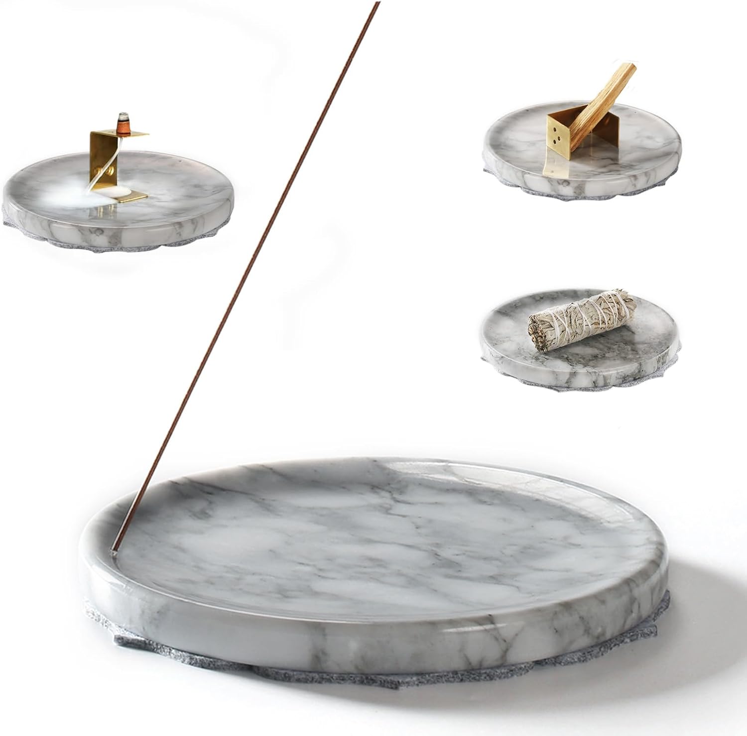 - 【Incense Burner Set】 1.*Includes an elegant incense burner,1* practical brass holder, and a non-slip mat. The hand-polished marble incense burner is easy to clean—simply wipe or rinse with water.