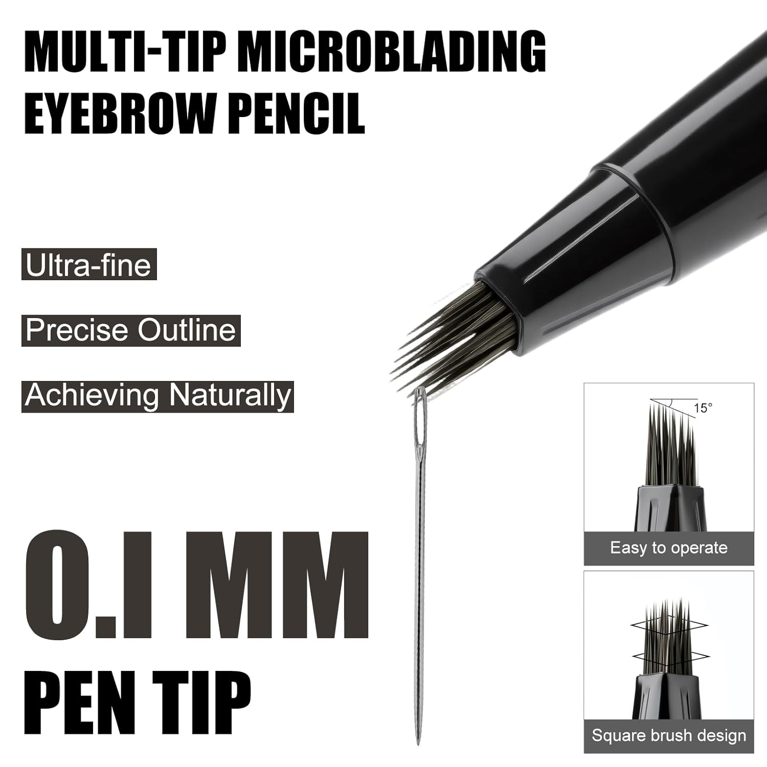 Microblading Eyebrow Pen - Waterproof Liquid Eyebrow Pencil with Angled Eyebrow Brush, Shapes & Fills Hair-Like Looking Brows, Lasts All-Day,Eye brow Pencil for Women and Girls Makeup,Soft Black