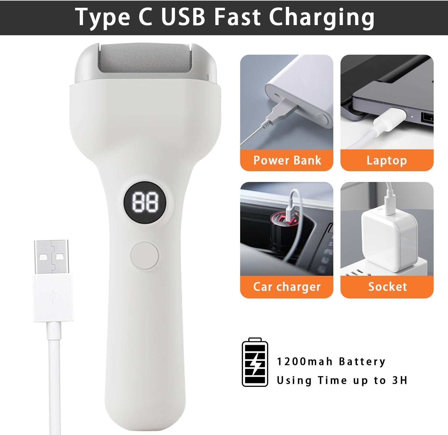- Long-Lasting Battery Power: This rechargeable electric callus remover for feet has a powerful 1200mAh battery, delivering cordless convenience for all-day. Ideal as a battery operated foot scraper, no charging worries—perfect for home or travel.