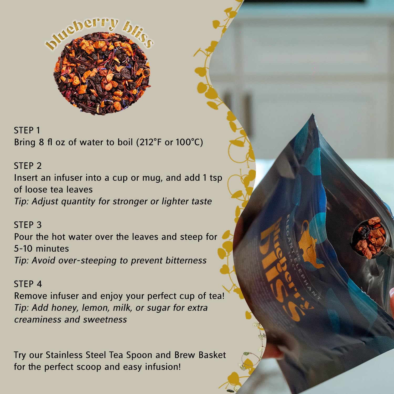 Blueberry Bliss Tea, Organic Loose Leaf Herbal Tea – Real Fruit, Summer Juice, Caffeine-Free, Refreshing Sweet Iced Drink – 4 oz Resealable Bag (Makes 50 Cups)