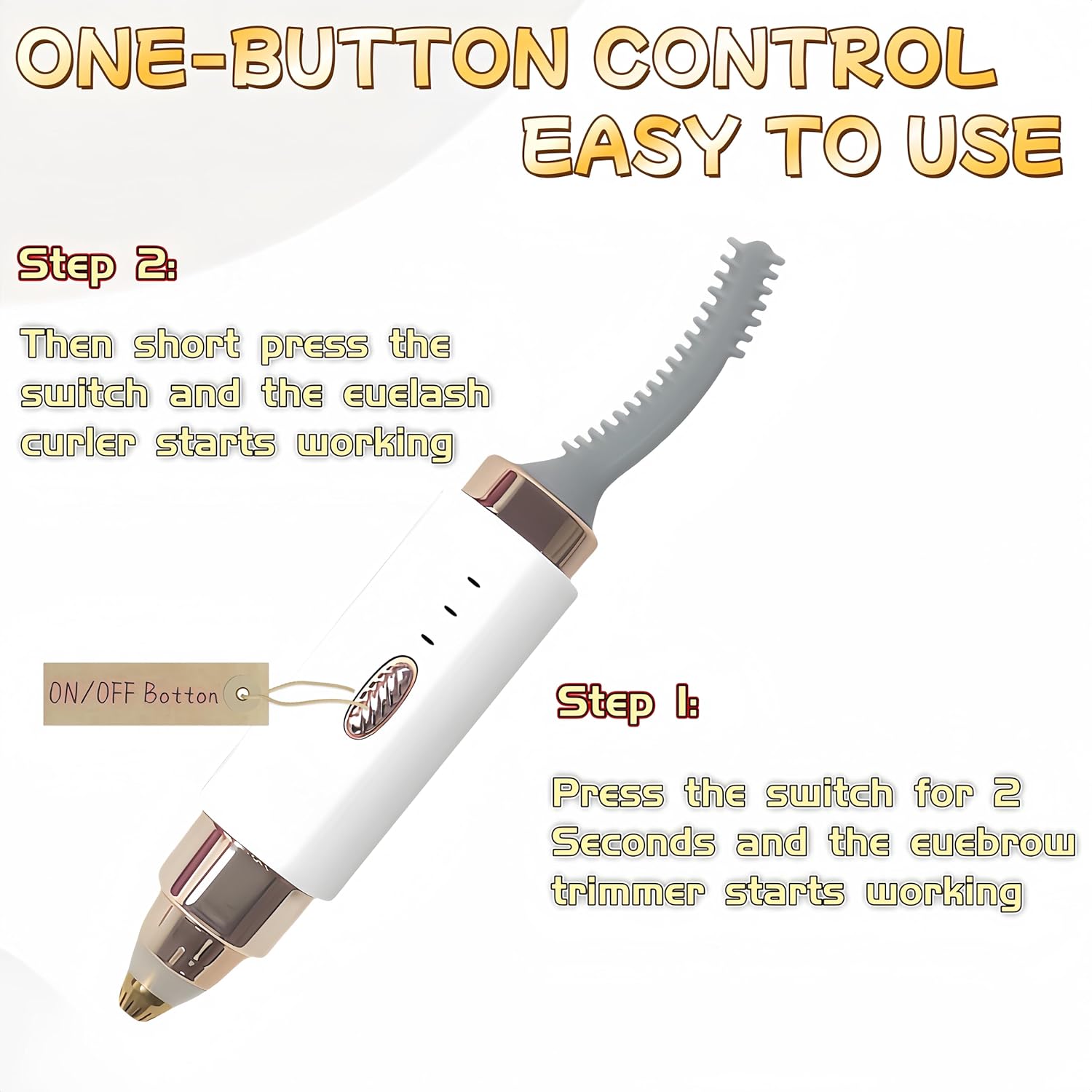 - 【One-Button Easy Operation】: Simplify your beauty routine with our heated eyelash curler and eyebrow trimmer, designed for effortless use. A single button lets you precisely choose the desired function: long-press for 2 seconds to activate the eyebrow trimmer, then short-press to switch to the eyelash curler. With its intuitive design, you can enjoy seamless operation, making it perfect for achieving stunning lashes and brows with ease