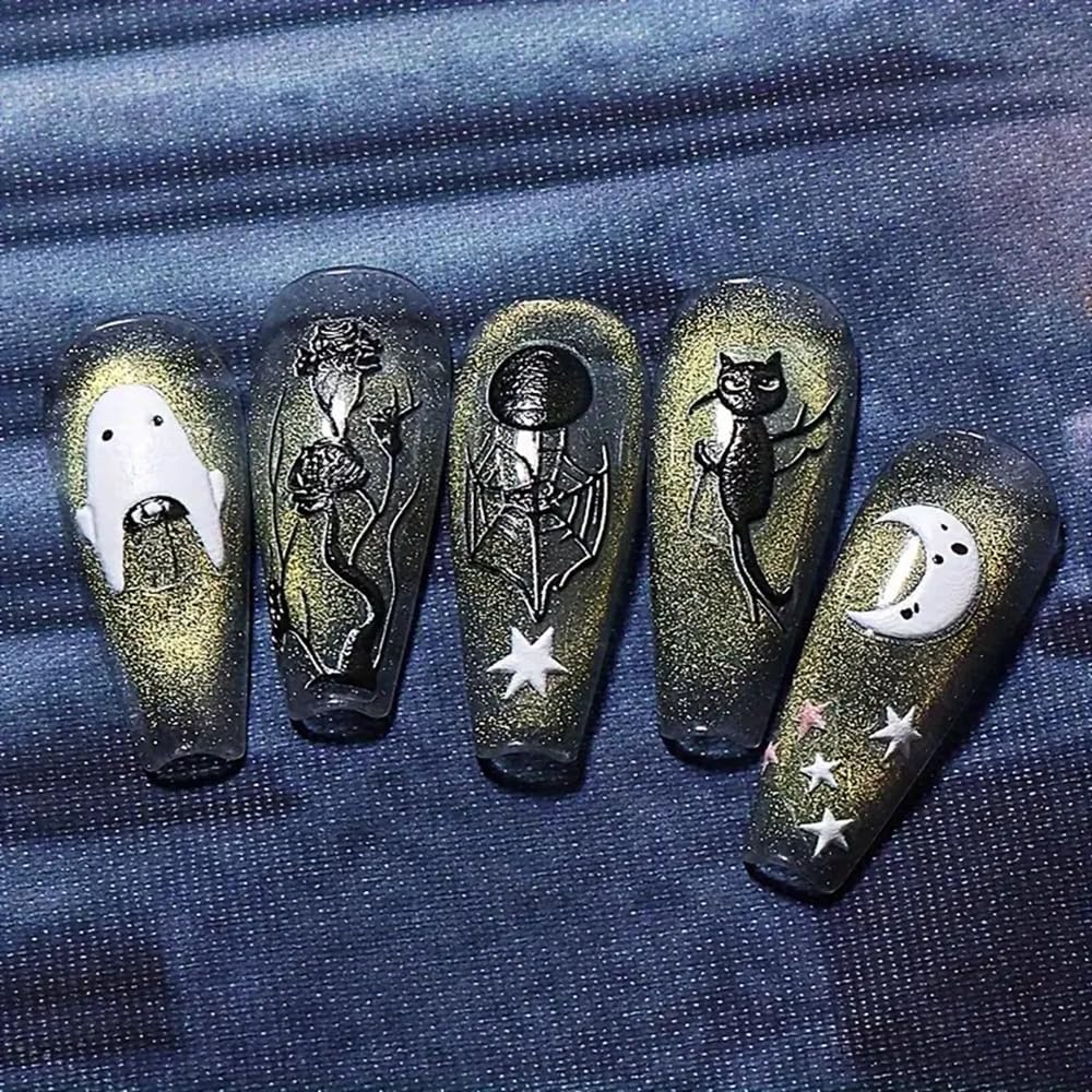 - [Halloween Nail Designs] Halloween nail art stickers have different patterns such as ghost, crow,rose, cat,bat,skull๏ผspider, star, moon etc. which can provide you with a variety of choices and let you use your rich imagination to nail DIY. At affordable prices, suitable for girls women fashion styles.
