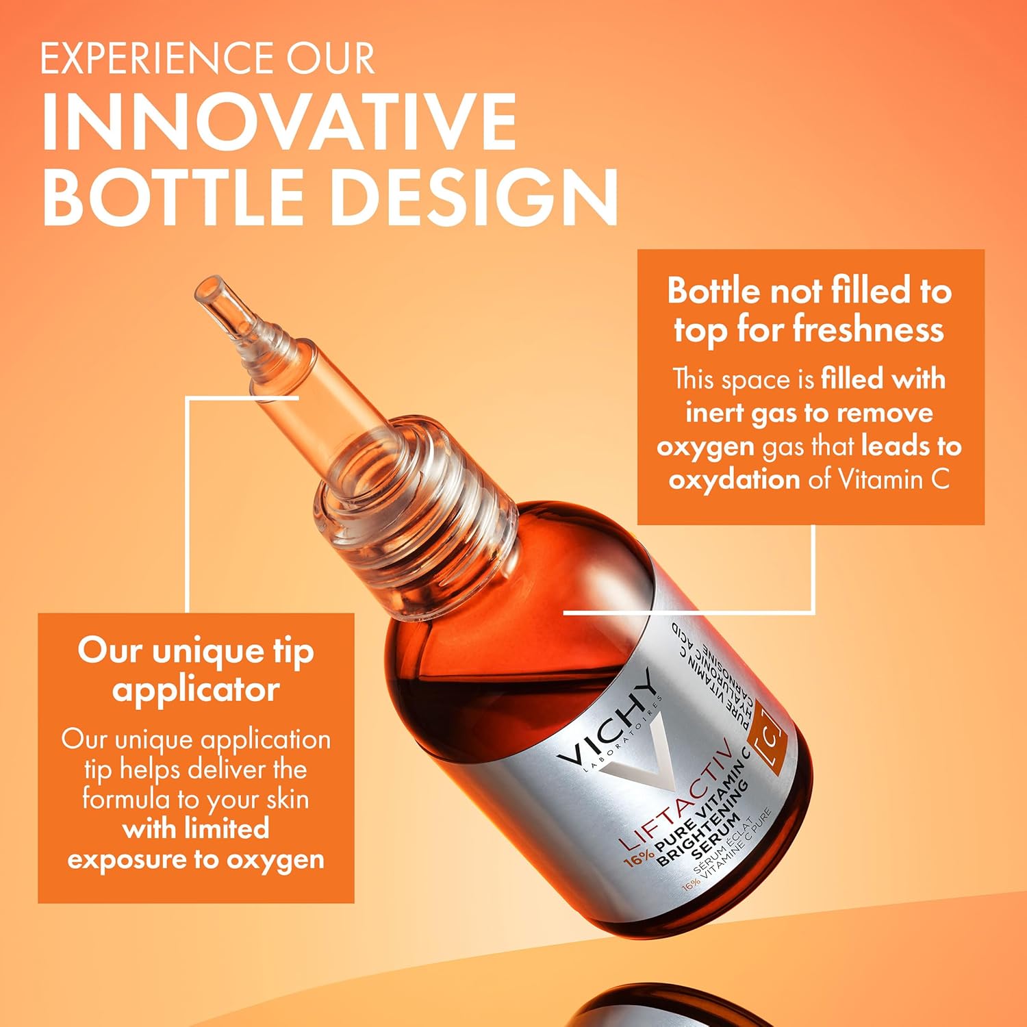 Vichy LiftActiv Vitamin C Serum For Face, Brightening Serum With 16% Pure Vitamin C + Hyaluronic Acid + Vitamin E, Improves Radiance & Firmness, Anti Aging, Protects Skin From Discoloration