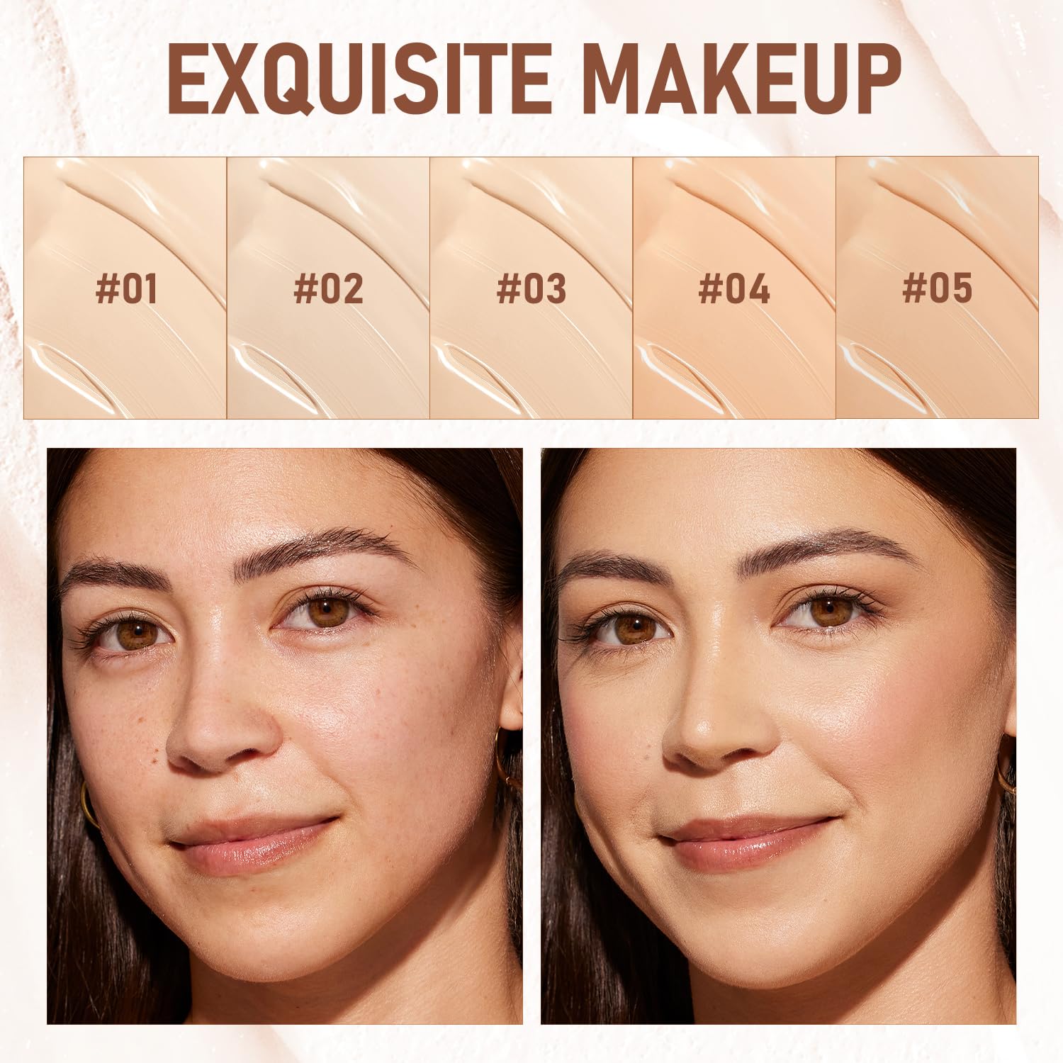 - 【Light Texture and Long-Lasting】: This foundation concealer glides on smoothly and blends naturally into the skin, evens out skin tone. The lightweight texture provides natural coverage without feeling heavy or cakey, and spreads easily, leaving makeup looking fresh and natural all day long with a matte finish