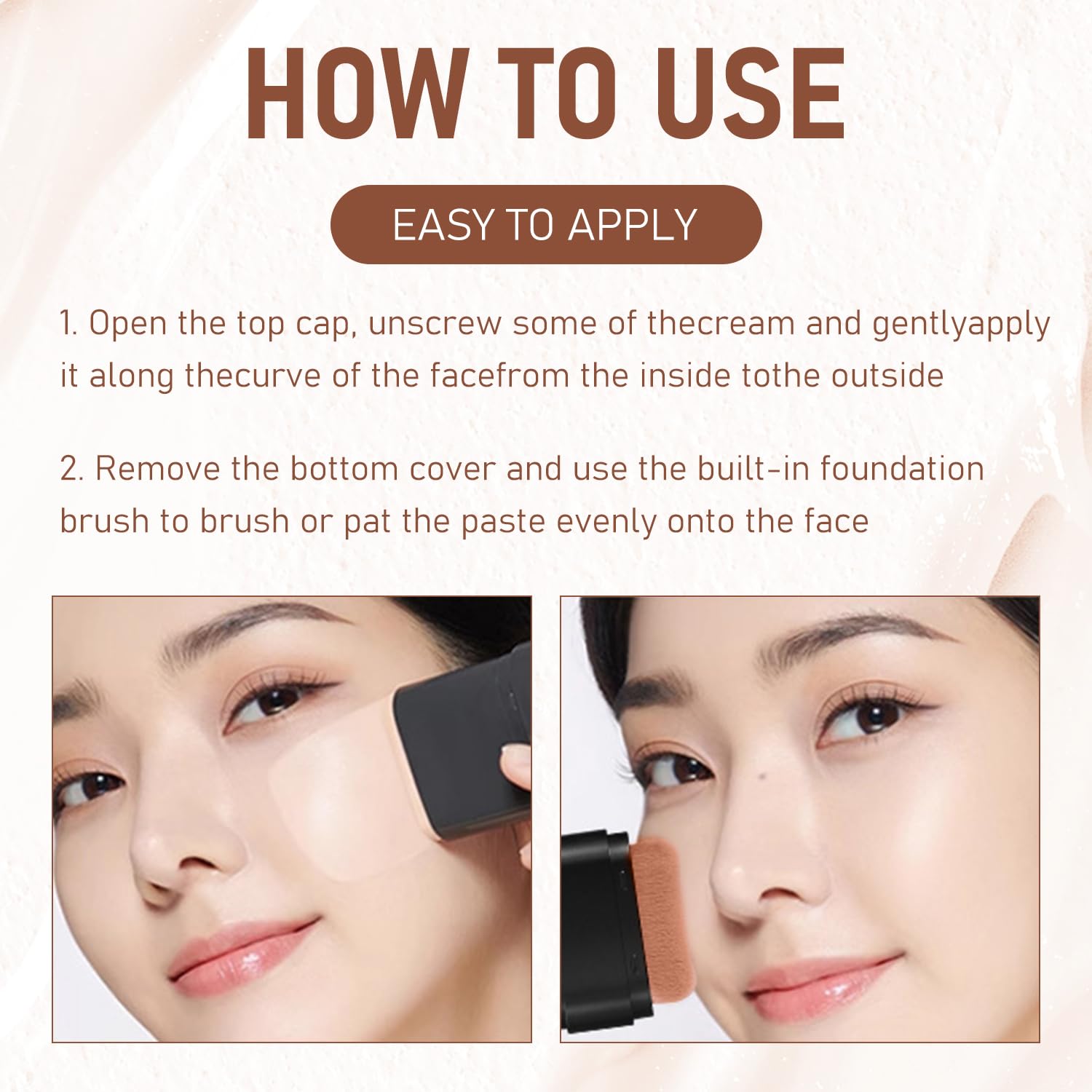- 【Full Coverage Foundation Stick】: The brush bristles of this concealer stick are soft and flexible M-shaped bristles, which fit the face shape and are comfortable to use. Easily apply foundation evenly to details such as nose wings, mouth corners, and eye corners